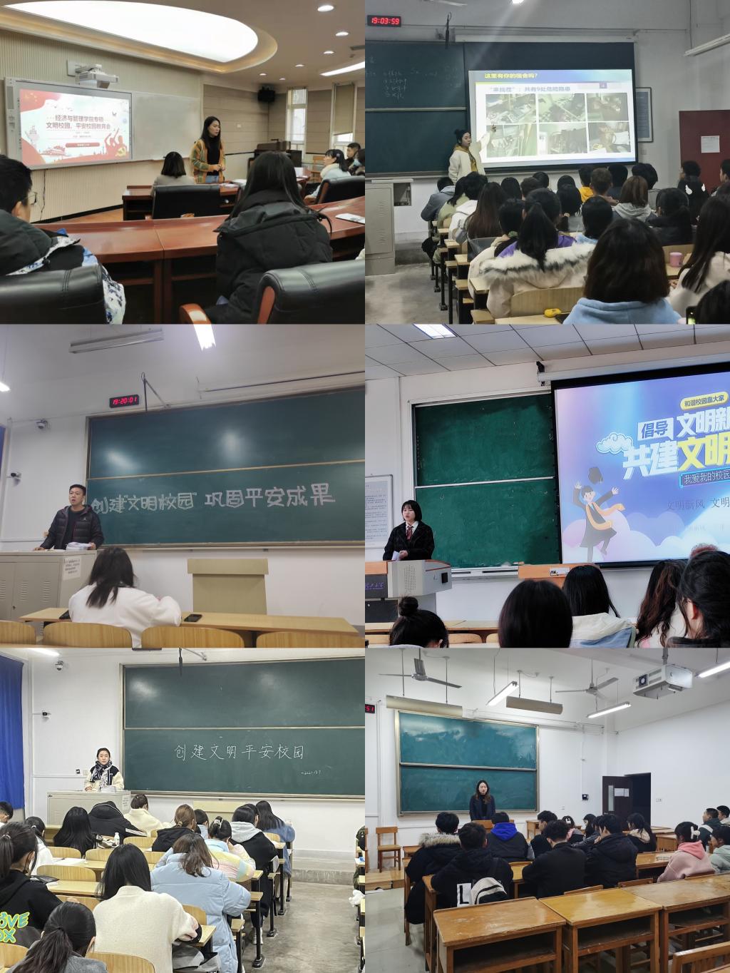 此次主题教育班会由各年级辅导员主持开展,各班同学认真学习了《平安校园评估认定工作宣传手册》《创建陕西省教育系统文明校园宣传手册》等政策文件,并联系各班生活实际,从校规校纪、行为举止、文明平安宿舍创建等方面展开研讨,对身边的先进模范典型及文明宿舍标杆进行了学习。通过此次主题教育班会,同学们纷纷表示要争做文明学生,共护平安校园。