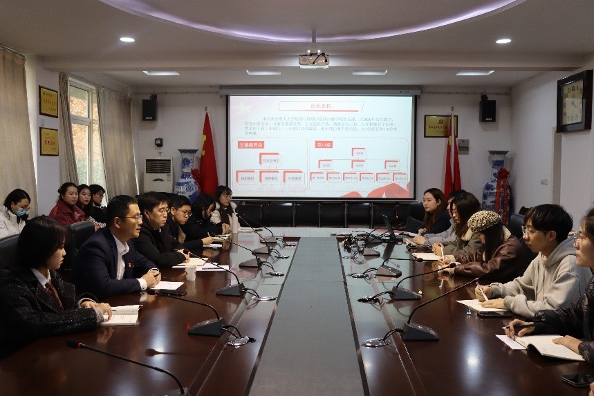 首先白华煜向学生党支部同学们介绍了马宁副书记的基本情况。党支部书记黎舒婷从支部宗旨、支部建设、支部活动、量化考核、未来展望五个方面对党支部过去一年的情况进行了总结。