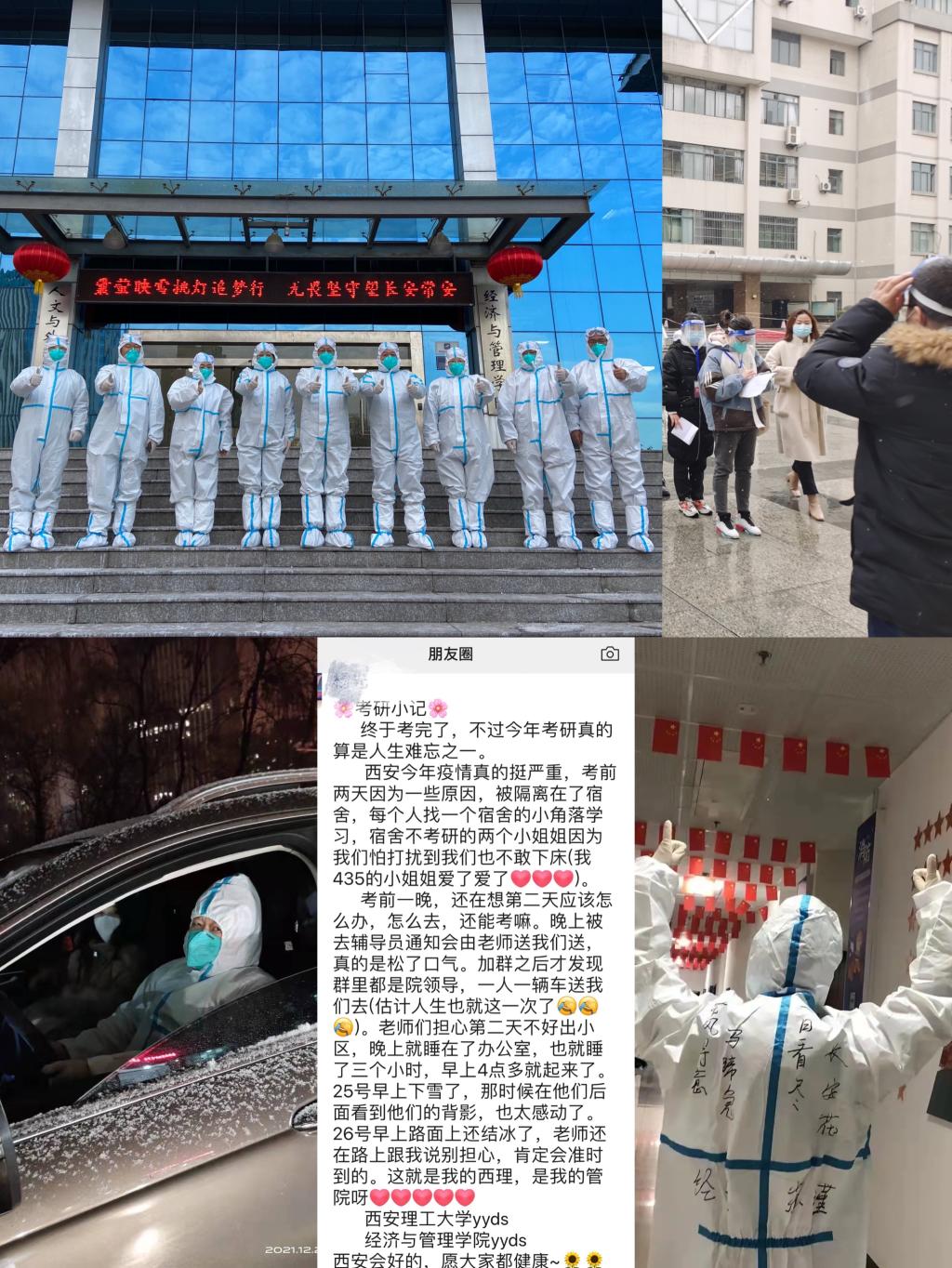 初雪恰今来,考研如约至。受新型冠状病毒影响,古城西安按下了“暂停键”。为确保研究生考试和疫情防控“双安全”,70net永乐高平台全体师生闻令而动,多措并举,同舟共济,用实际行动践行着初心和使命,成为了抗击疫情最坚强有力的主力军。