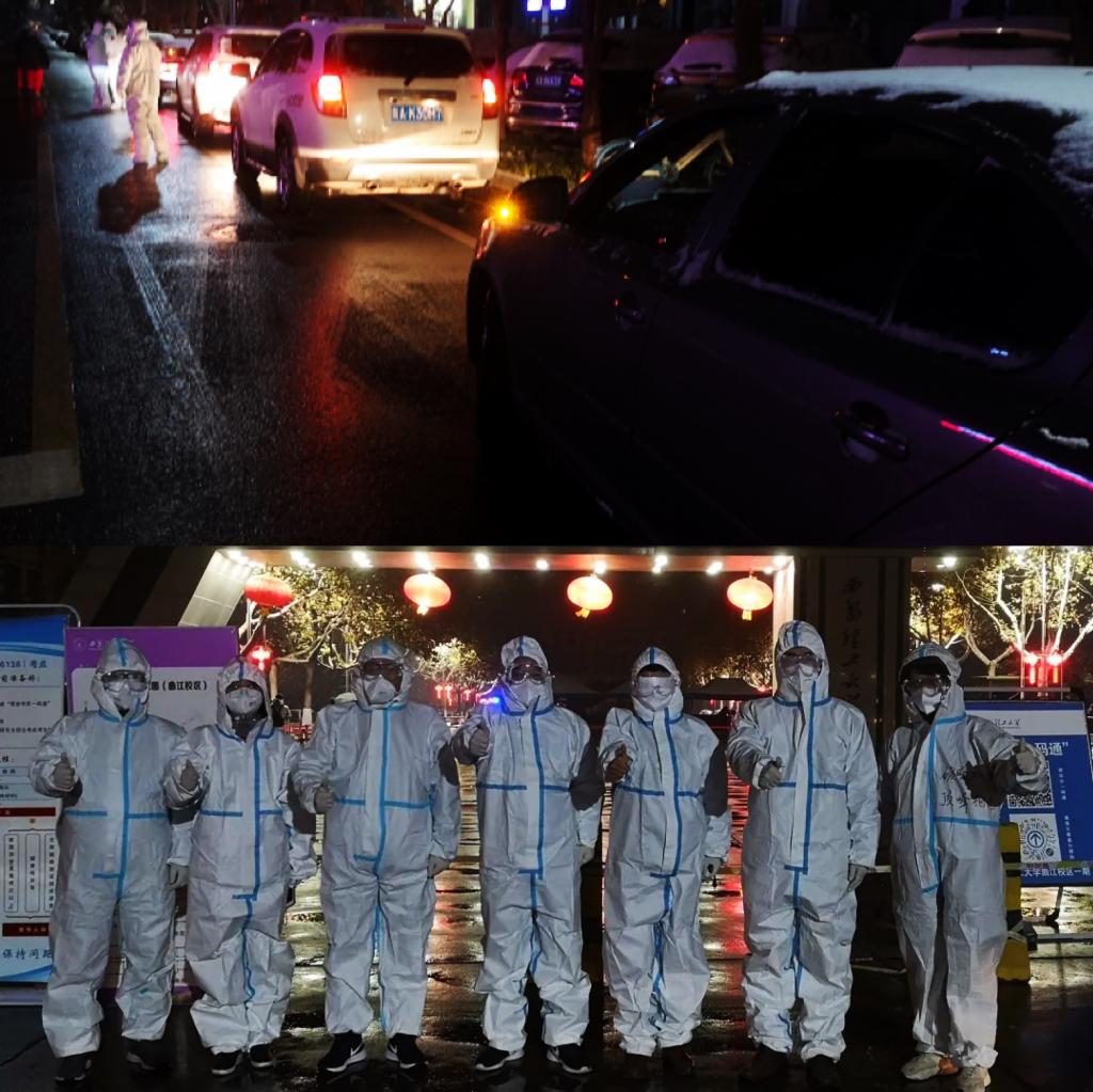 “符合要求请进校,同学请出示核酸检测证明,证明不符48小时进校要求,体温超过37.3……”。为保障本次研究生考试顺利进行,在接到值守东门处理学生特殊情况的任务后,学院党委迅速集结6支教工党员抗疫先锋队20余名党员,党委书记和院长为总负责人始终坚守在现场,及时处置迅速安排车辆送考生去隔离考场,两日以来,党员先锋队累计处理特殊考生情况100余例,点对点送考6人,确保学生考试不延误。天光未明,夜雪未散,党员先锋队员们凌晨五点就已身披战袍,驻守在曲江校区东门。有任务的地方便有党员,有党员的地方就有坚守,他们用自己的身躯阻断病毒的扩散蔓延,彰显了共产党员不畏风险、英勇奋斗的英雄本色,更是为学校的几千名师生筑起了生命防线。