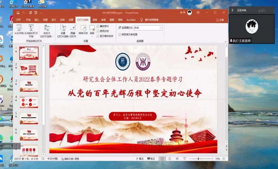 4月16日,70net永乐高平台研究生会线上召开春季学期工作例会。会议由研会执行主席姜帅主持,研究生分会全体成员参加会议。