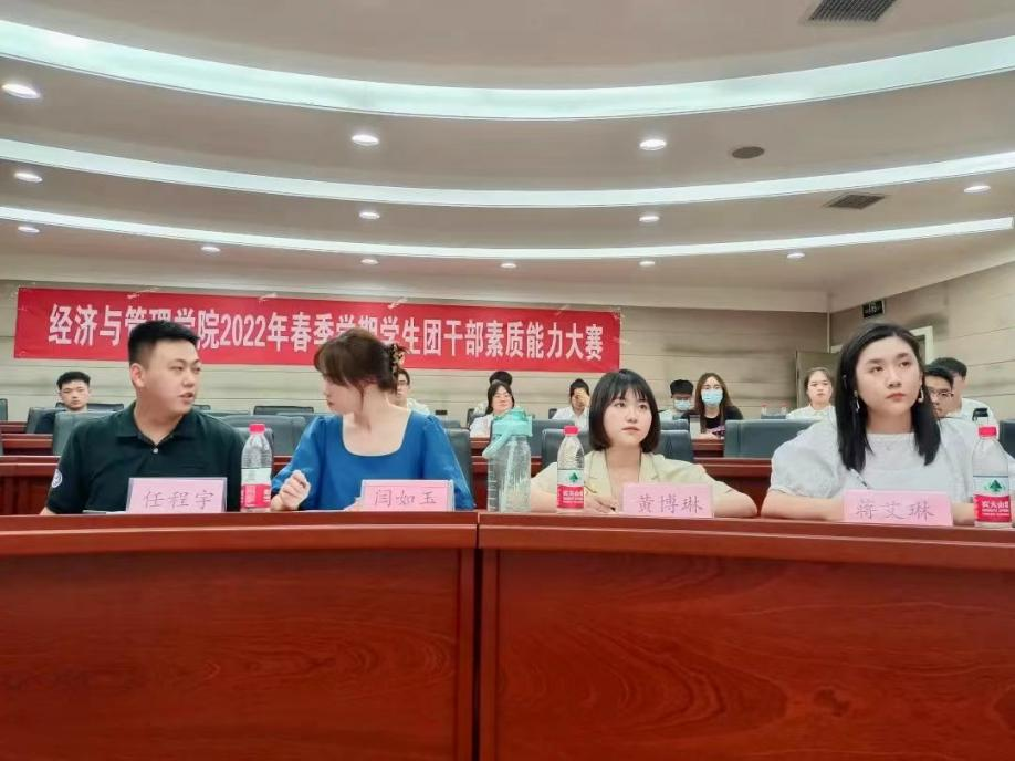 5月5日下午,70net永乐高平台于教11-320顺利举办2022年学生团干部素质能力大赛,院团委书记闫如玉、辅导员黄博琳、蒋艾琳、任程宇和黎舒婷出席本次活动。活动由文艺部裴延主持。