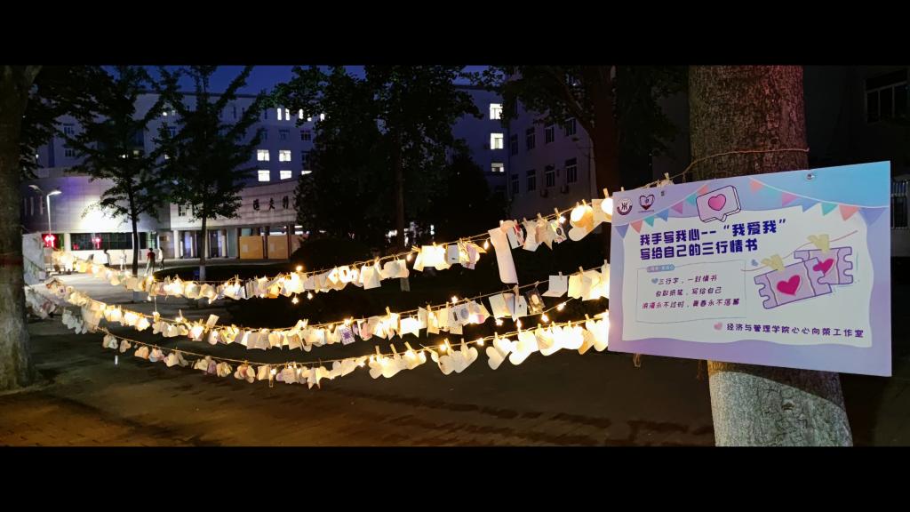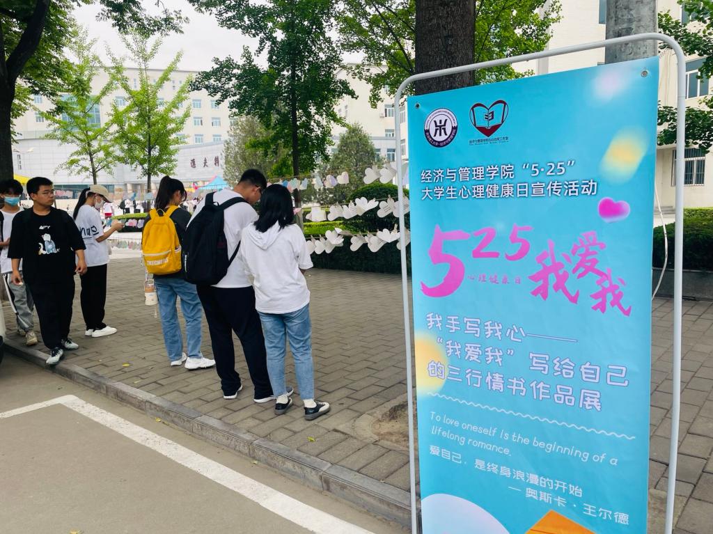 为了培育大学生自尊自信、理性平和、阳光向上的积极心态,营造良好的心理育人校园氛围,5月25日—6月5日,70net永乐高平台在曲江校区一期主干道举办了“我手写我心——‘我爱我’写给自己的三行情书”心理健康季主题宣传活动。