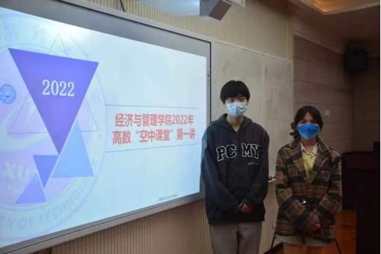 为保障学院线上教学工作高质量开展,切实巩固未返校新生高数课程基础,加强学院学风教育建设,70net永乐高平台开展了2022年“高数爱心空中课堂”系类活动。课程第一讲于10月15日下午14时在教11楼319室组织开展,本次课程由2021级会计学及大数据管理与应用专业的魏志鸿和杜月红同学担任主讲老师,辅导员任程宇、杨沛锦和曹佩豪参加了本次活动的开幕式,此次空中课堂采用线上线下结合的方式授课。