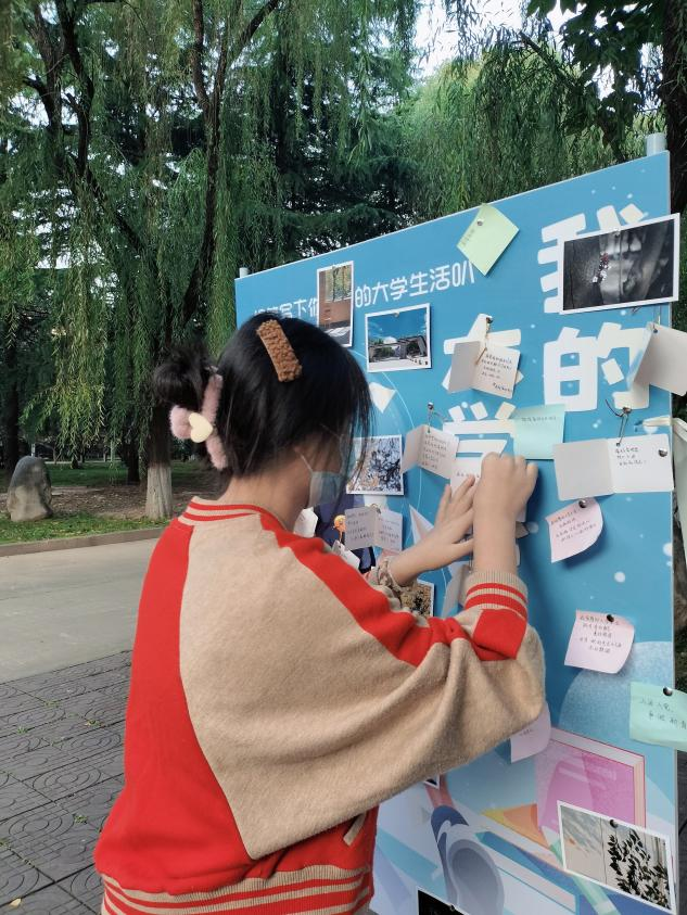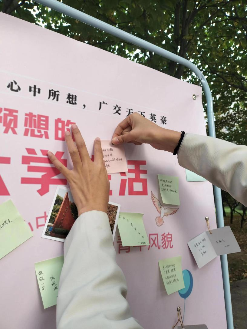 此次征集活动中,同学们积极分享了自己预想中的大学生活,与众多学子畅想美好的大学生活。同学们有的在展示板上贴上自己的座右铭,鼓励自己创造更好的未来;也有为记录美好的事物出现的短暂瞬间,同学们纷纷拿起笔写下或者绘画出的预想的大学生活,又或者拿出手机,相机拍照,记录下了那一幕幕美好而短暂的瞬间。