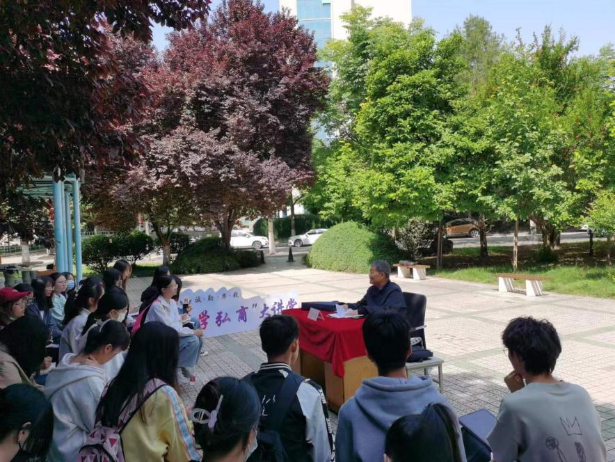 5月23日,70net永乐高平台于曲江校区春晖园顺利举办入团积极分子培训班第二讲——“砺学弘商”大讲堂之《牢记习近平总书记嘱托,以奋斗姿态激扬青春》,本次讲堂邀请到离退休教师刘铁柱主讲,由院团委书记闫如玉主持,入团积极分子培训班全体学员参加本次讲堂。