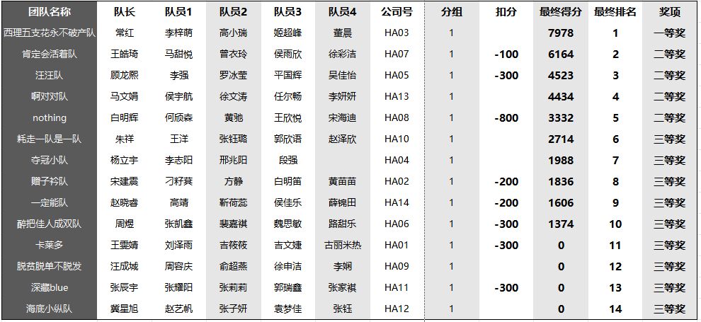 本次比赛分为三轮进行:知识竞赛、初赛、决赛。知识竞赛阶段,荣邀段刚龙老师担任出题人,由ERP社团审批试卷。初赛采用了线上比赛形式,经过9月17日的激烈竞争,同学们精密分析、热情高涨,小组团结一致、共诚一心,小组成员精诚合作,各司其职,展现出了一个个优秀的团队崇高精神理念,最终有14支队伍进入决赛。第十六届大学生“龙腾杯”创业设计暨ERP沙盘模拟大赛决赛于9月22日,举行地点在管院(教11)机房,在决赛中竞争激烈,气氛热烈。西理五支花永不破产队最终得分7978分,力争第一,队员能力突出,团队协作优秀。最终共有14支队伍获奖,让我们对他们予以热烈的祝贺。