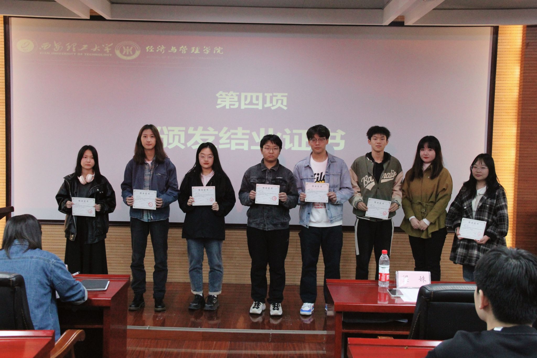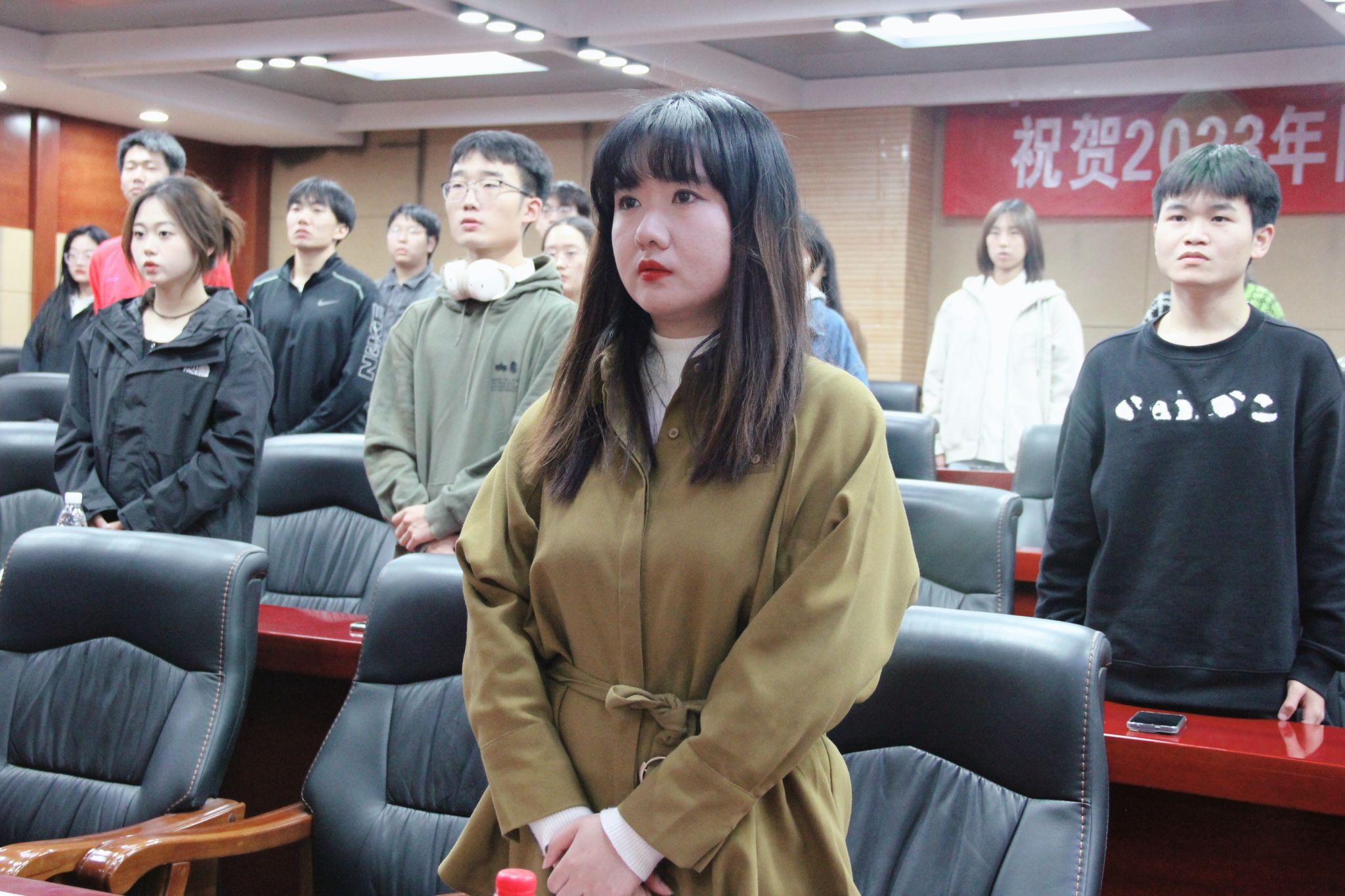 会议宣读了第一期入团积极分子提高班结业名单和第二期新学员名单,为第一期结业学员发放结业证书,国贸231团支部丁璇璇代表第二期新学员发言,她表示:“有信念、有梦想、有奋斗、有奉献的人生,才是有意义的人生”,“当代中国青年生逢其时,施展才干的舞台无比辽阔,实现梦想的前景无比光荣”她用这三句话同全体新学员共勉,并表示将会在接下来的培训中积极响应学院的号召,与所有新学员一起共同进步,提升思想觉悟,在实践中磨炼意志。