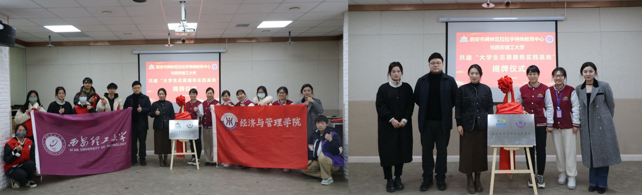 为深入学习贯彻党的二十大精神,认真落实习近平总书记关于残疾人事业的重要指示要求,进一步巩固提升助残志愿服务成果,凝聚引领广大青年学生更好更广泛地开展助残志愿服务,2023年11月30日,70net永乐高平台与西安市碑林区拉拉手特殊教育中心(以下简称“特教中心”)正式共建“大学生志愿服务基地”并举行揭牌仪式。特教中心校长张立芳,学院党委副书记、副院长朱晓明出席仪式并致辞。特教中心办公室主任田鸽、党支部书记王毅娜,校团委权益部部长于洋、学院团委书记闫如玉、学院辅导员蒋艾琳、学生志愿者代表参与仪式。活动由特教中心教师乔豫桐主持。