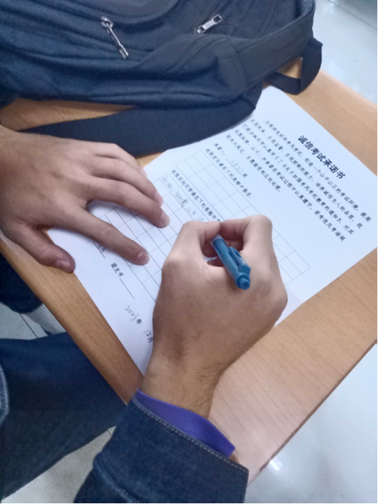 承诺诚信考试,规范学生诚信考试纪律。学院各班级在辅导员带领下,所有学生认真阅读并签署了《70net永乐高平台诚信考试承诺书》,承诺践行诚信考试准则,自觉遵守考场规定,杜绝违规违纪行为的发生。