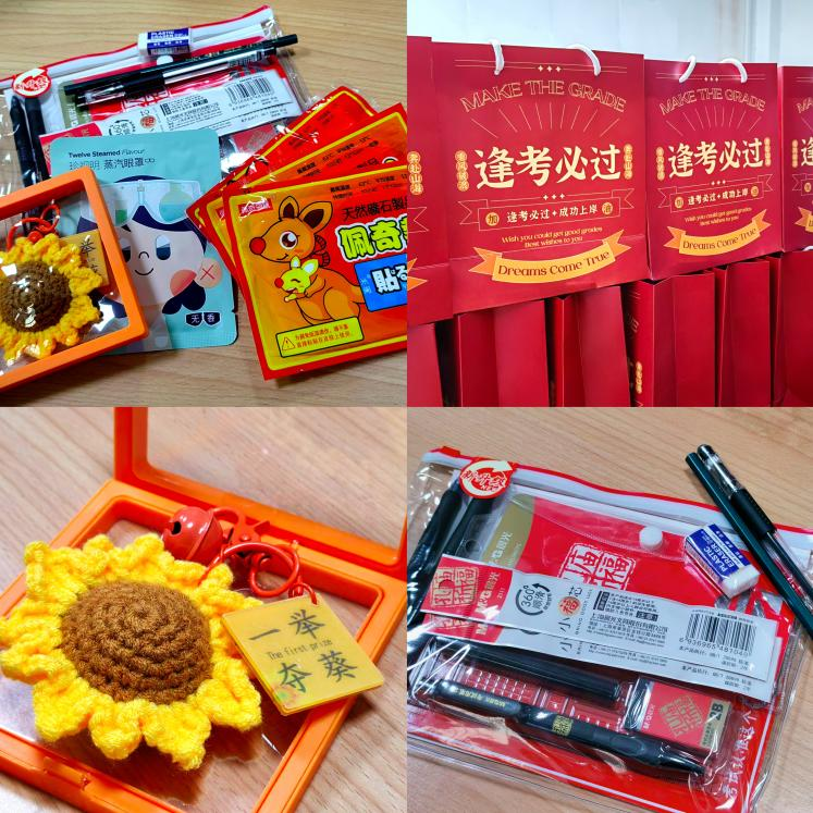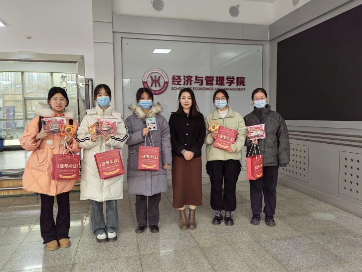 活动伊始,学院党委副书记朱晓明亲切询问了考研同学们的备考情况、身体状况、生活保障等情况。希望同学们在最后的冲刺阶段,要保持积极的心态,按照复习计划稳步向前、奋斗到底;毕业班辅导员老师们叮嘱同学们在紧张的备考之余还要注意自己的身体健康,劳逸结合,不骄不躁,保持良好的状态迎接考试,祝愿同学们成功上岸,金榜题名,实现梦想。随后,毕业班辅导员姚伟华、黄博琳两位老师为考研学子送上学院精心准备的暖心礼包:向日葵钥匙扣寓意着一举夺“魁”;祈福文具寓意“金榜题名”;暖宝宝寓意着“宝”架护航;蒸汽眼罩寓意“蒸蒸日上”。功不唐捐,玉汝于成,收到暖心礼包的同学们也纷纷表示感谢,他们一定全力以赴,力争取得优异成绩。