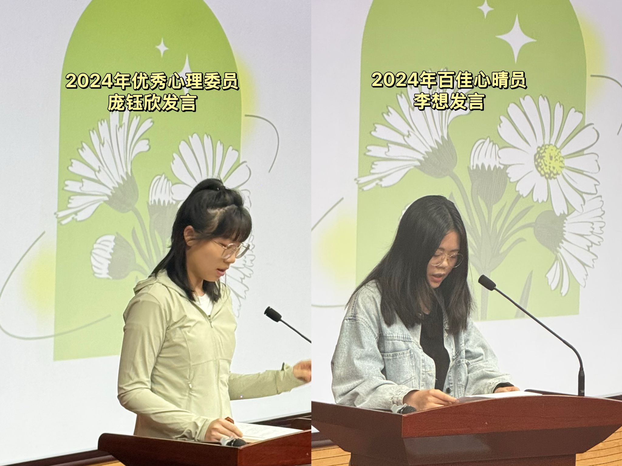 随后,刘静老师深入解析了班级心理委员、宿舍心晴员的职责与使命,引导学生心理骨干在日常学习和生活中,积极担当、助力提升同学心理健康水平。最后,学院2024年优秀心理委员庞钰欣、百佳心晴员李想分享了他们在班级、宿舍开展心理健康工作的丰富经历与感悟。