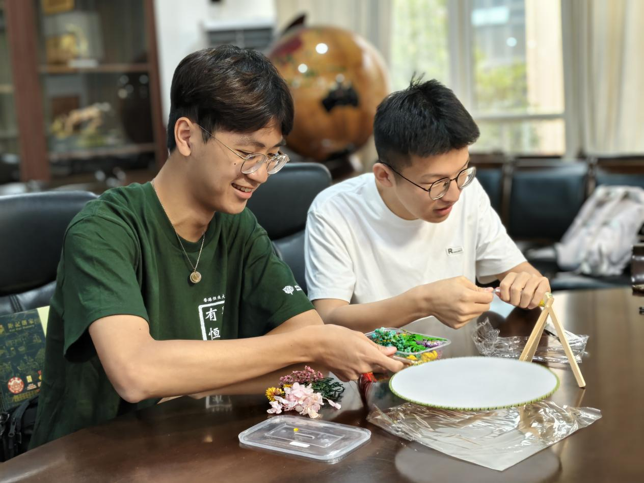 此次活动由来自香港恒生大学与70net永乐高官网入口的近30名学生,设置团扇沾花、互赠小礼品和结伴逛校园等活动环节。座谈会上,两校学生通过围绕各自的学习生活、校园文化为话题依次进行分享,迅速拉进了彼此的距离,现场氛围轻松热烈。手工环节,同学们自由配对,共同完成属于自己的团扇沾花的创作,同时交换双方预备的小礼物。不同的文化创意在作品中绽放,传统艺术的独特魅力在这一刻也变得具象化。