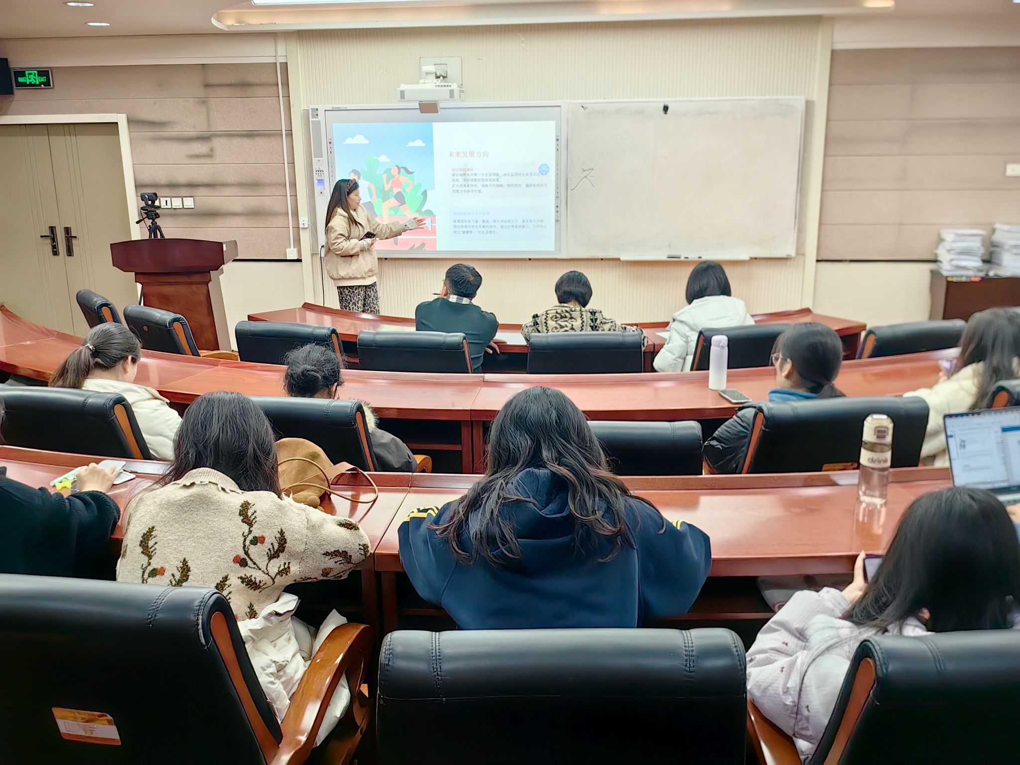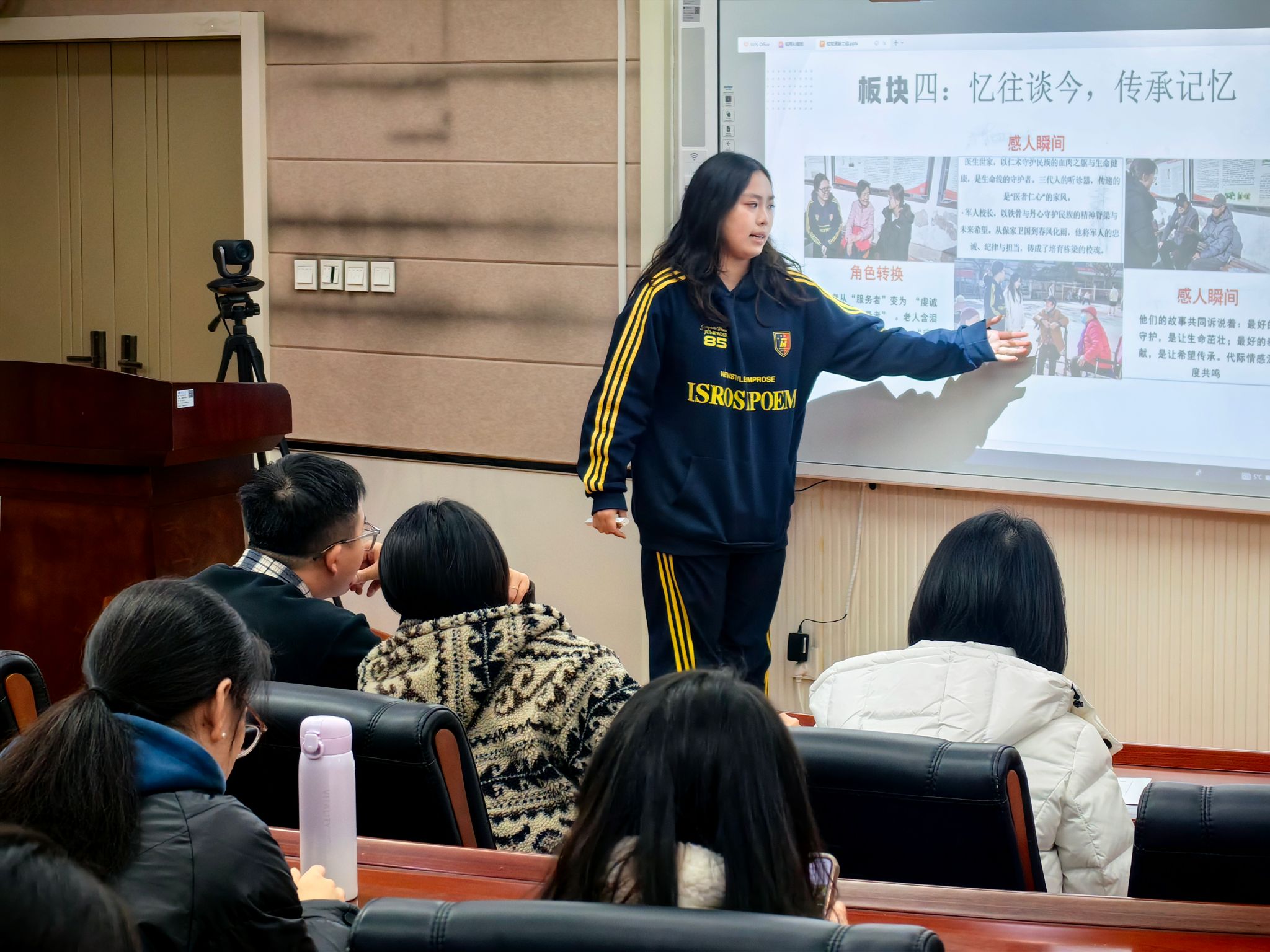 在主题调研汇报环节,各小组立足时代需求与青年视角,聚焦红色教育与社会服务重点领域深耕细研。部分小组以“党史学习”为核心主题,深入挖掘党史中的精神密码,探讨新时代青年传承红色基因的路径方法;另有小组聚焦老龄化社会背景下的民生痛点,开展“大学生志愿者助推老年数字融入的实践逻辑研究”,通过问卷调研、实地访谈、手把手教学等实践形式,系统分析老年群体数字融入的难点堵点,为优化大学生志愿服务助力老年数字赋能提供了有益思路。志愿服务类汇报则充满温情与担当,各小组深入不同服务场景,用实际行动践行奉献精神。其中,部分小组走进交大附属二院家属区,为老年居民提供健康咨询、情感陪伴等服务;有的小组前往拉拉手特教中心,通过趣味游戏、知识讲解、手工制作等形式,陪伴特殊儿童成长,用爱心传递温暖;还有小组走进八路军办事处,开展史料整理、讲解辅助等志愿工作,在服务中深化对革命历史的认知;另有小组前往浐灞湿地公园,开展生态环保宣传、垃圾清理、绿植养护等活动,以实际行动践行绿色发展理念,助力生态文明建设。