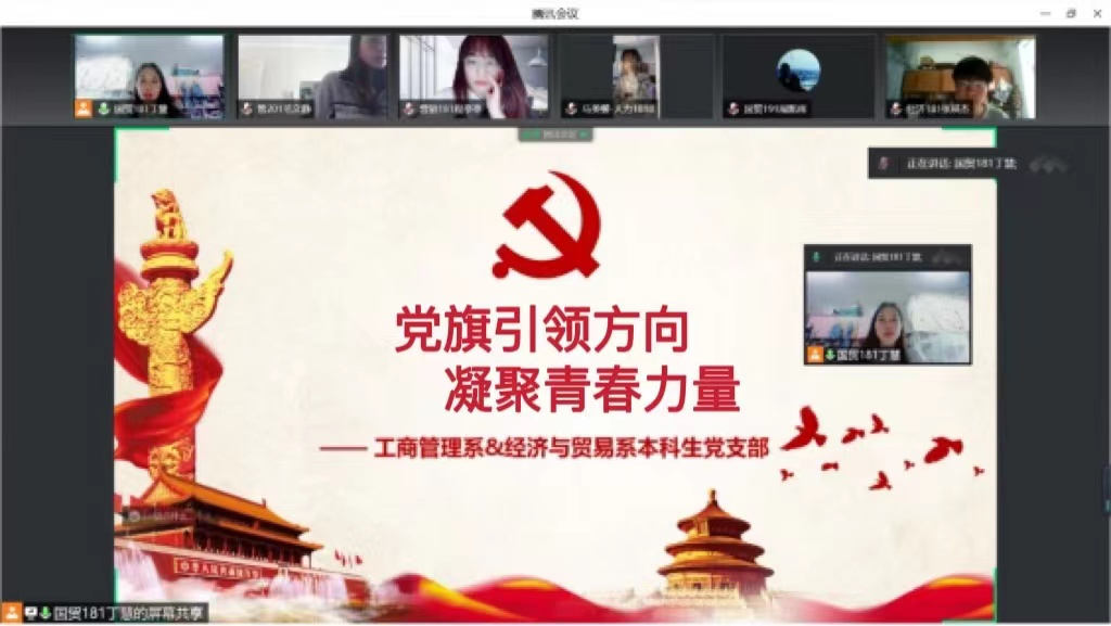 为进一步增强党员理想信念,锤炼党性修养,70net永乐高平台工商管理系本科生党支部与经济与贸易系本科生党支部于5月16日在线上开展了“党旗引领方向 凝聚青春力量”专题学习活动,会议由丁慧主持。