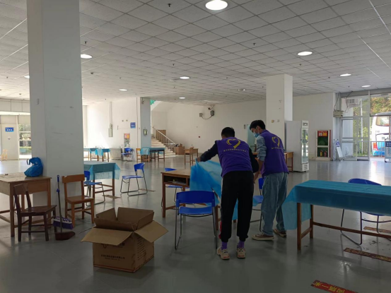 在学院的组织安排下,曹宇轩带领支部党员领取志愿服务工作,大家各司其职、尽职尽责,全力保障核酸检测工作的高效进行。工作期间,支部党员引导数千名同学有序进入曲江校区大学生活动中心进行核酸检测,督促参检同学自觉佩戴口罩、保持一米间隔距离、提前打开手机核酸检测程序、核酸后及时消毒等志愿服务环节。最后,曹宇轩进行工作总结,本次疫情防控志愿服务工作是支部团结力量的体现,众志成城共战疫、当好同学“守护神”是支部精神的诠释。