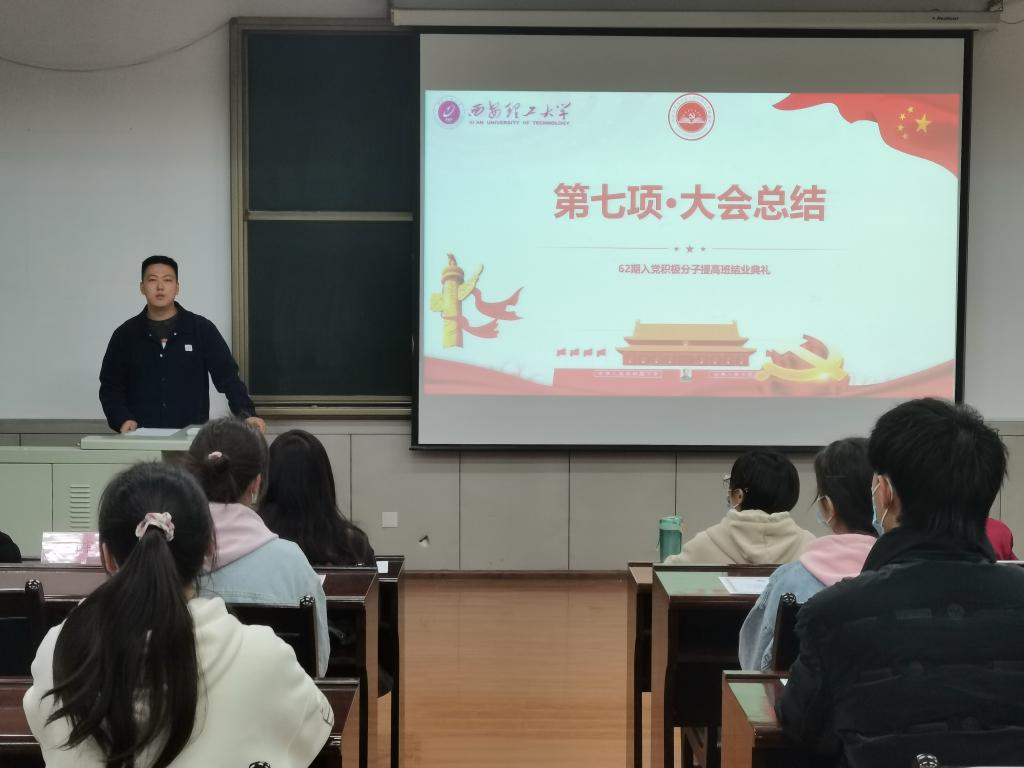 3月22日晚,70net永乐高平台在教学楼10-107举办了第62期入党积极分子提高班结业仪式。学院分党校负责人任程宇及62期提高班全体学员参加了本次会议,会议由提高班班长董赟飞主持。