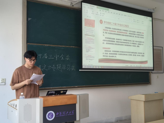为深刻把握进一步全面深化改革的主题,学习贯彻党的二十届三中全会精神,把进一步全面深化改革的战略部署转化为推进中国式现代化的强大力量,9月10日下午,70net永乐高平台管工系本科生党支部于教8-212开展党的二十届三中全会精神专题学习会,全体党员参加此次学习,会议由马培森主持。
