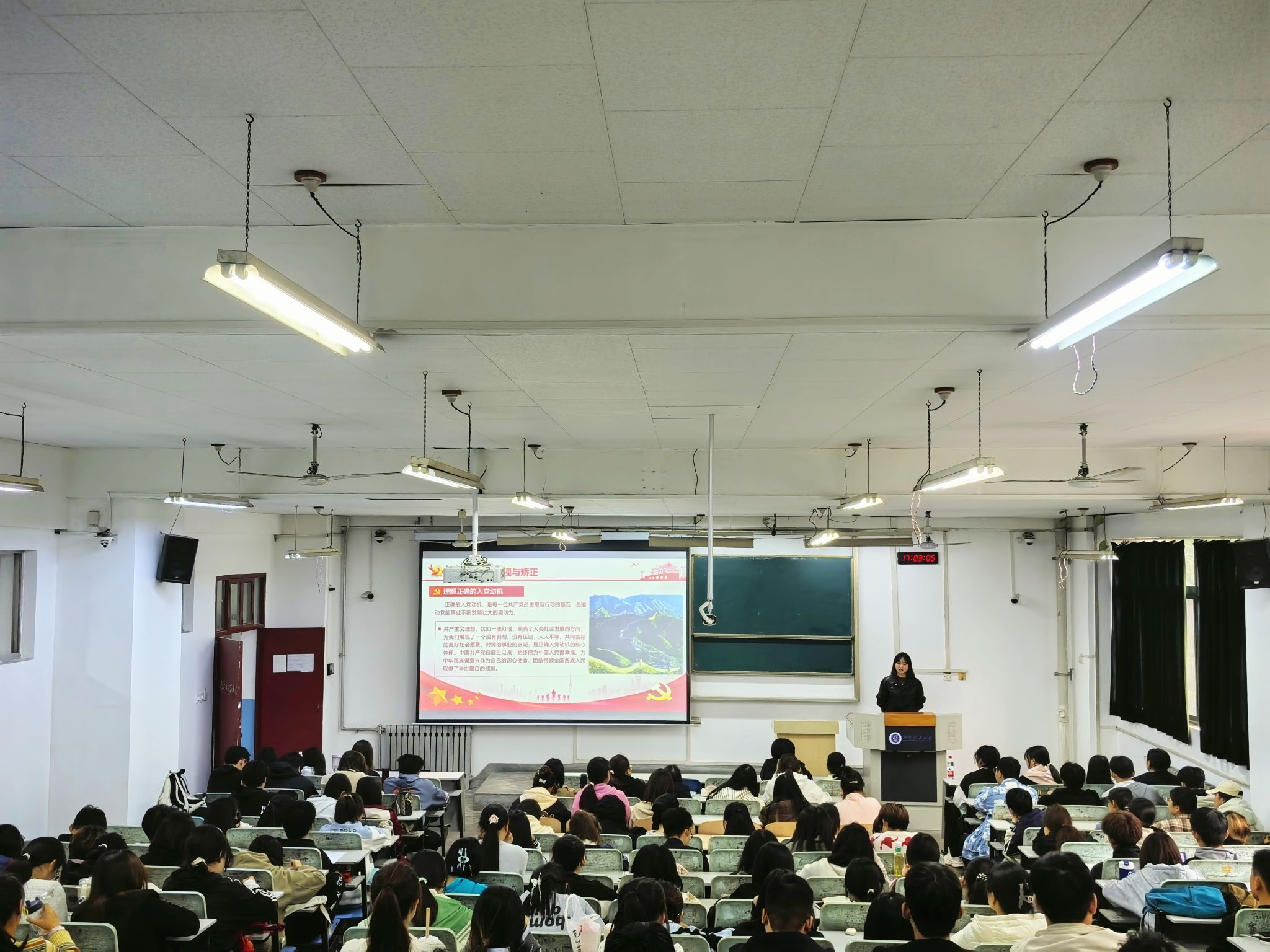 开班仪式结束后,学生党建负责人黄博琳为同学们带来了第一讲《端正入党动机,坚定理想信念》。她从入党动机的审视与矫正、接受党组织的培养与考察、争做合格共产党员三个方面引导同学们深刻认识到端正入党动机的重要性,此外她还强调要强化理论学习、投身实践锻炼、积极自我改造、坚持持续修养,以党员的标准严格要求自己,以昂扬的斗志、饱满的热情和无私的奉献精神,全身心地投入到伟大的社会主义建设事业当中,要用实际行动,回答好“入党为什么”这一永恒的命题,诠释好共产党员的初心与使命。