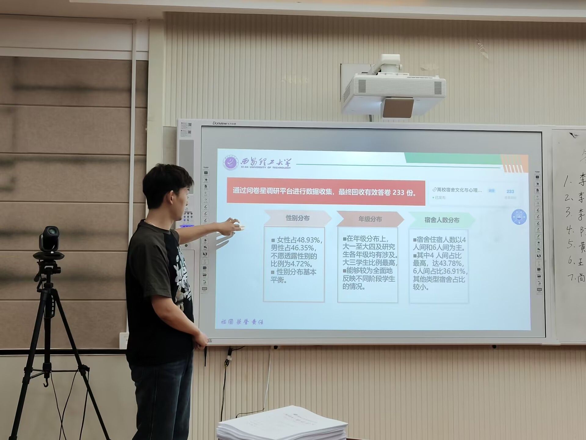 在汇报过程中,各小组代表通过PPT的形式从选题意义、调研方法、调研过程、调研成果、志愿活动参与等方面进行了汇报展示,调研内容广泛且丰富,涵盖了大学生对红色文化的认知现状与教育调研、大学生使用AI工具的态度与习惯调研、敬老院志愿服务、流浪动物救助等多个方面,调研过程扎实,结果真实可靠,尤其是部分同学前往敬老院、特教中心、社区开展志愿服务活动,充分展现新时代大学生良好风貌。