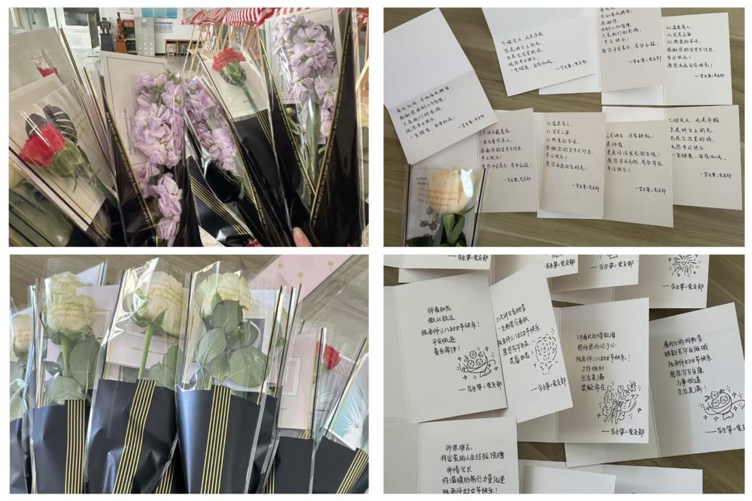 提前筹备的时光里,支部党员们用心打磨每一份祝福。支部党员们将老师们在课堂上的谆谆教诲、成长中的悉心指引,化作笔下一句句真诚的话语,把藏在心底的感恩,凝于笔墨、见于纸笺。每一束花、每一张卡,都饱含着青年学子对女教师最纯粹的敬意与祝福。