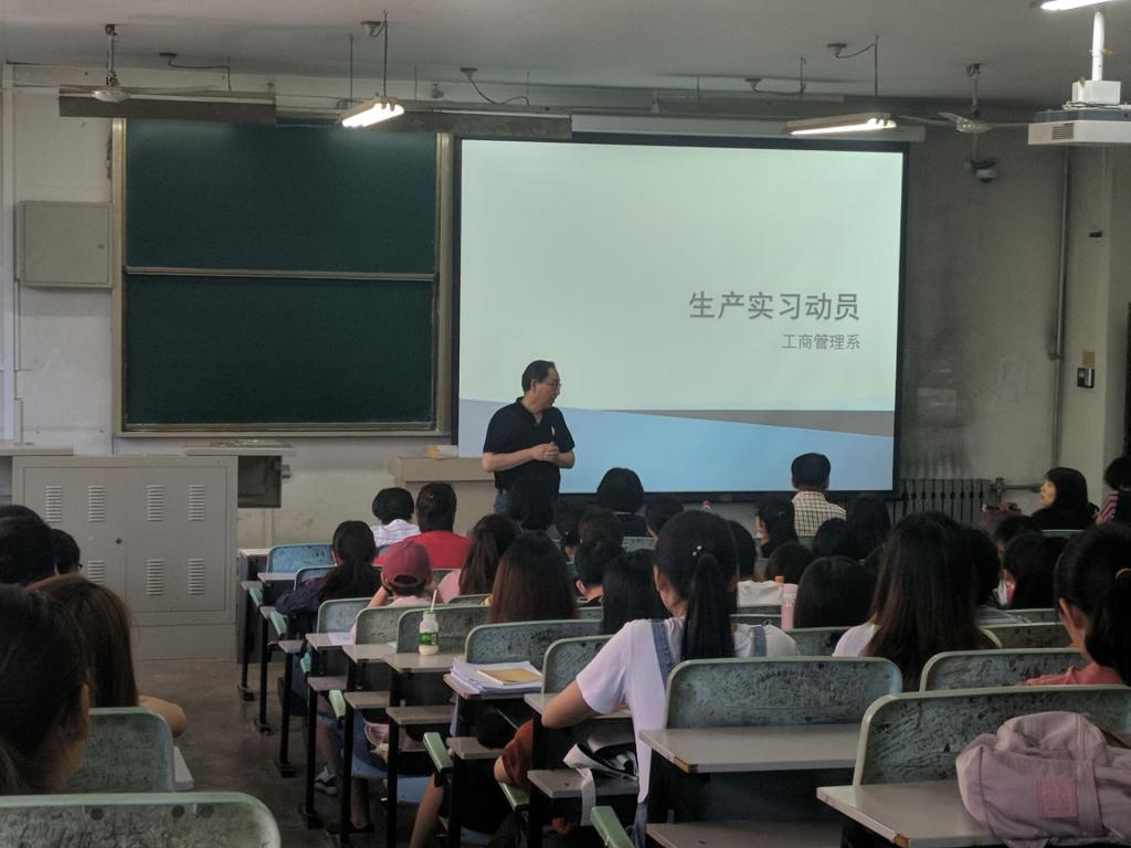 2019年7月1日,经管学院工商管理系在教8-216教室,针对2016级工商管理、人力资源、市场营销3个专业的133名同学,就湖北十堰和江苏宿迁两地生产实习任务召开部署动员大会。大会由实习队长许刚全副教授主持,工商管理系副主任杨毅副教授、带队教师胡利利副教授、陈瑛副教授、蔡俊亚副教授、蒋晓荣副教授、任晓燕副教授、李丹老师、岳英老师等出席了本次动员会。