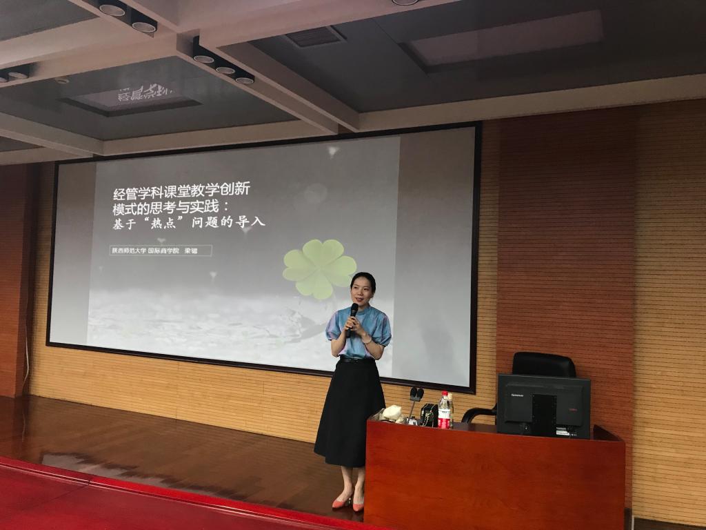应70net永乐高平台邀请,2019年5月15日下午2:30,陕西省首届课堂教学创新大赛一等奖获得者--陕西师范大学青年教师梁锶副教授报告会在我校70net永乐高平台EMBA报告厅举行。报告题为《经管学科课堂教学创新模式的思考与实践:基于“热点”问题的导入》,70net永乐高平台70余位教师参与此次报告会。