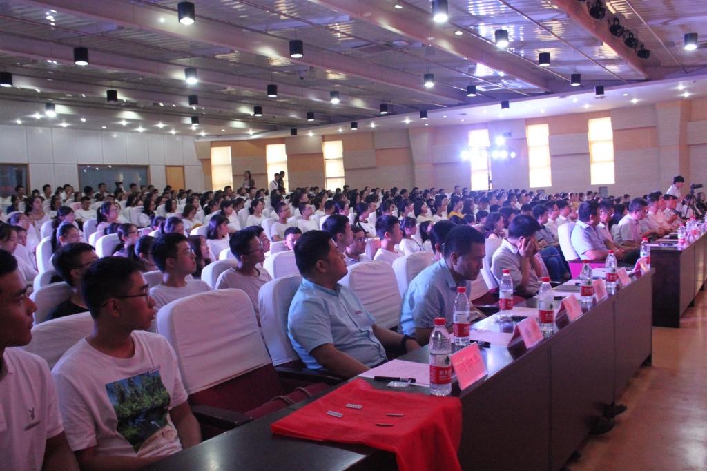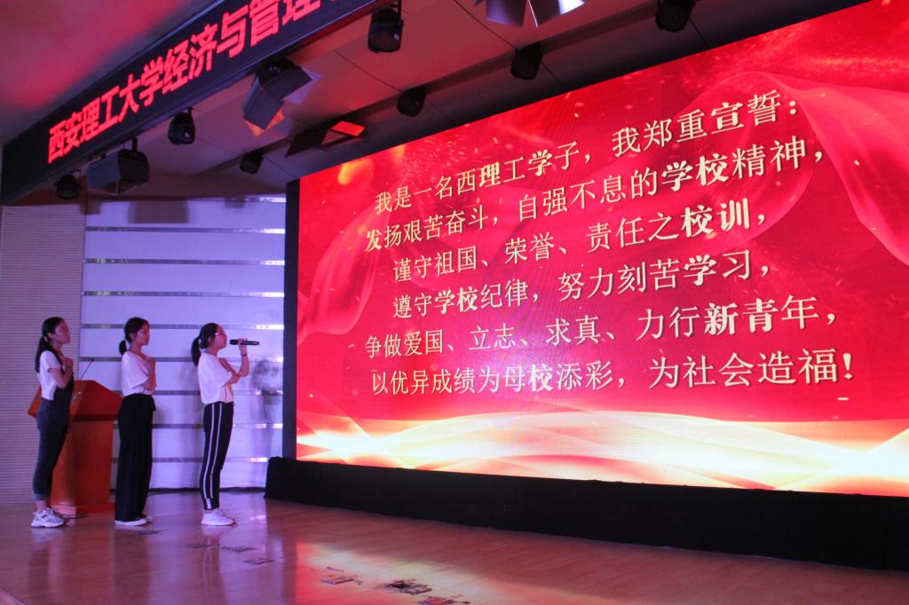 在庄严雄壮的国歌声中,开学典礼拉开帷幕。主持人宗娜老师介绍到会嘉宾并对2019级新生的到来表示热烈的欢迎。大会伊始,胡海青院长致欢迎辞,他代表全院教职员工对2019级本科新生表示热烈欢迎和祝贺,并激励所有新生继续努力,奋发拼搏。随后,王瑞生书记宣读军训表彰决定,并希望获奖学生珍惜荣誉,再接再厉,继续保持艰苦奋斗的优良作风,发扬英勇顽强的拼搏精神,要求全体同学以优秀学生为榜样。之后,新生代表的发言也让所有人对大学新生活怎样度过有了新的认识和决心。今年的新生入学典礼特别设计佩戴校徽和宣读入学誓词环节,在校歌的伴奏声中,全体院领导及各系正副主任为新生代表佩戴校徽,全体学生互相佩戴校徽,学生代表用铿锵有力的声音庄严宣誓,在这一刻,每位新生的身上烙印上了70net永乐高官网入口的名字,也象征着他们真正踏入了理工大校门,成为了西理人。最后,大会在全体参会人员合唱的校歌《春华秋实》中圆满结束。