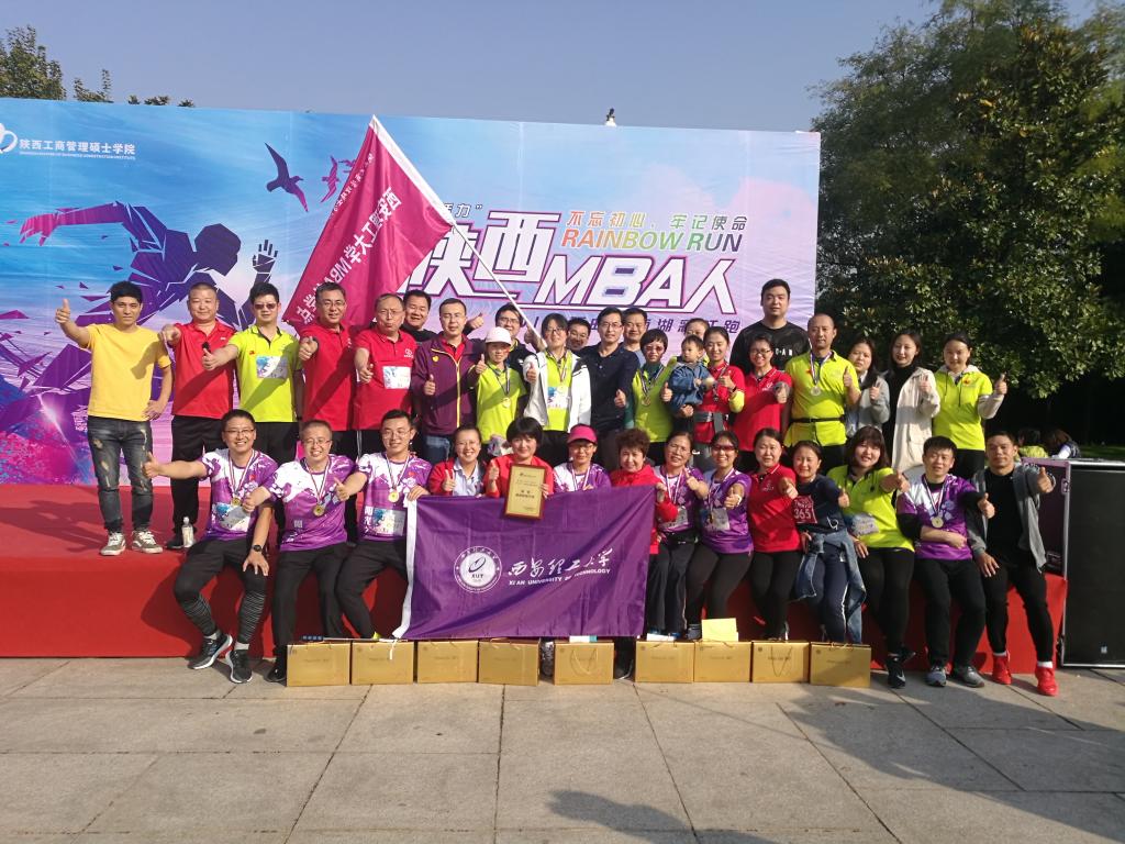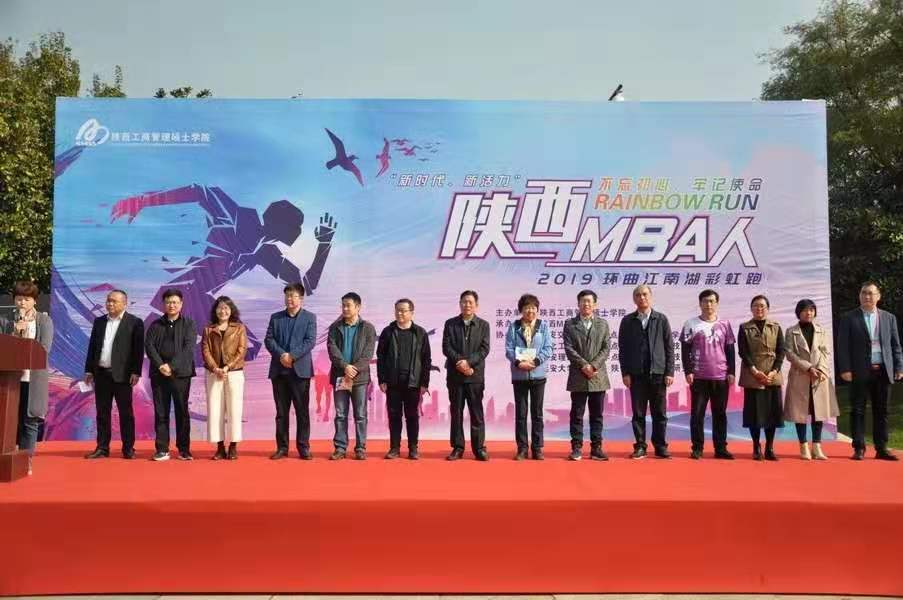 11月3日,“新时代、新活力”陕西MBA人2019年“环曲江南湖彩虹跑”活动,在曲江(南湖)遗址公园隆重举行。我校经管学院MBA教育中心主任邓朝晖和杨鹏老师带领我校MBA师生受邀参加活动。
