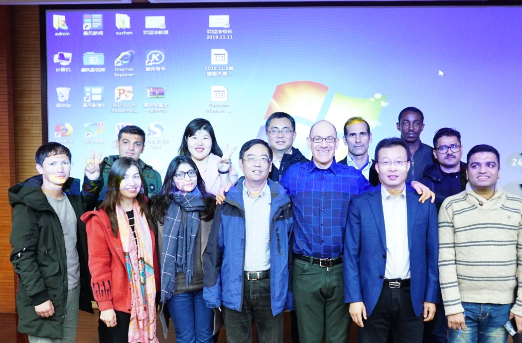 史提芬·霍夫曼以幽默的风格活跃着现场气氛,学术报告在全场同学们热烈的掌声中圆满结束,大家合影留念。出席本次学术报告的还有张栓兴、甘凯、王兆群等老师。