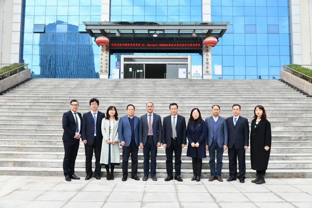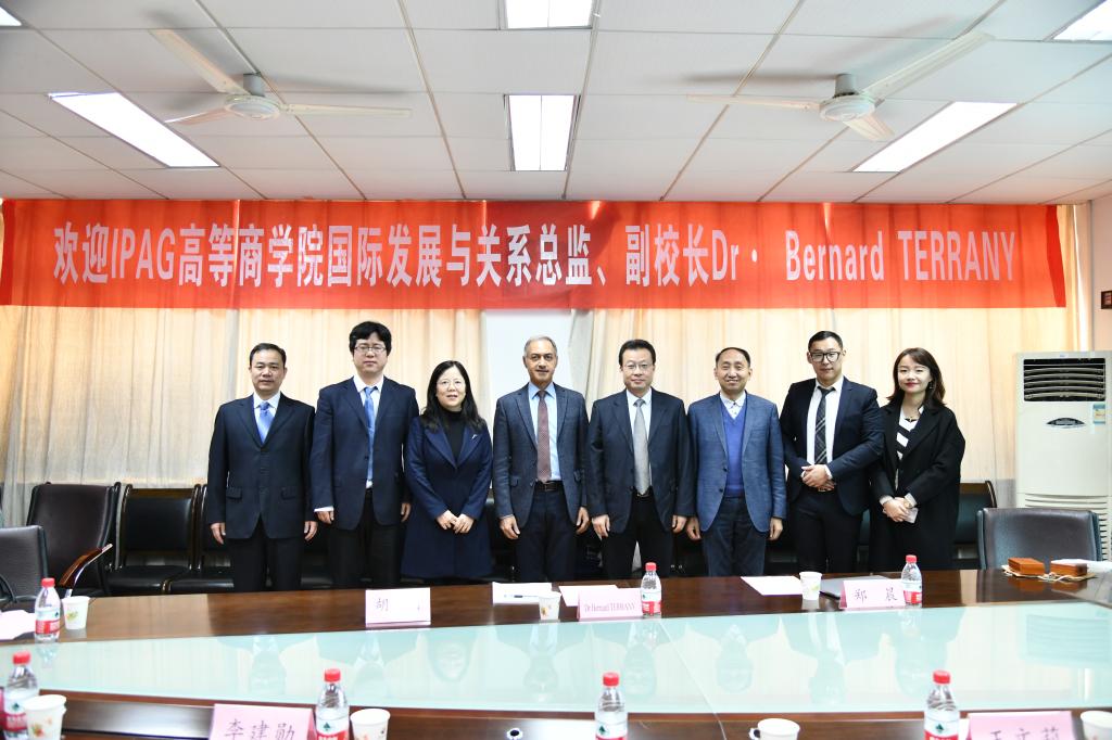 院长胡海青首先代表学院对法国IPAG高等商学院Dr.Bernard TERRANY副校长一行表示欢迎,并对我院本科生、硕、博士研究生培养以及学科发展等方面做了简要介绍。随后双方就MBA/EMBA专业学位培养,DBA项目国际化推进与学术交流进行了深入交流。