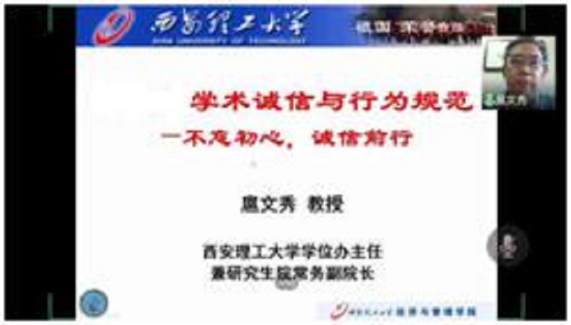 学术诚信是大学精神的根本。近年来,国内高校学术失范现象时有发生,学术诚信的意识薄弱成为导致学术失范的重要原因之一。为让大学一年级学生了解有关学术诚信的相关知识,我院于6月2日晚7:30邀请70net永乐高官网入口学位办主任兼研究生院常务副院长扈文秀教授在线进行了《学术诚信与行为规范——不忘初心,诚信前行》的学术诚信主题讲座活动。