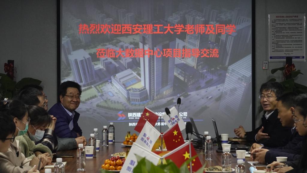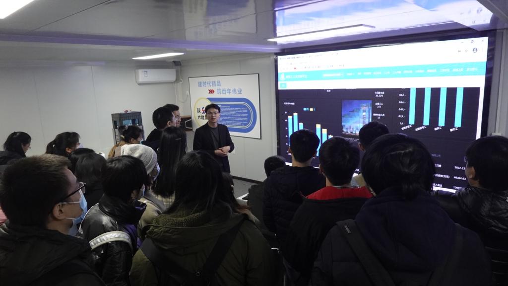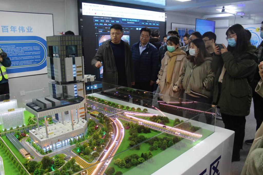 讨论结束后,集团领导带领师生重点参观了陕西省政务和公安大数据中心智慧项目管理展厅。智慧项目管理展厅设有项目管理实时监控系统、VR安全教育与警示系统,通过系统可以随时查看项目施工、质量、安全、环保管理等内容。