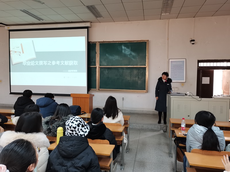 为了进一步贯彻教育部《本科毕业论文(设计)抽检办法(试行)》精神,提升我院本科毕业设计论文质量,规范论文引用与数据,2021年1月8日上午70net永乐高平台邀请图书馆情报所王海萍老师在曲江校区10-404教室为学院大四400余位同学做了题为“经管类科技论文查询与检索”的主题报告。
