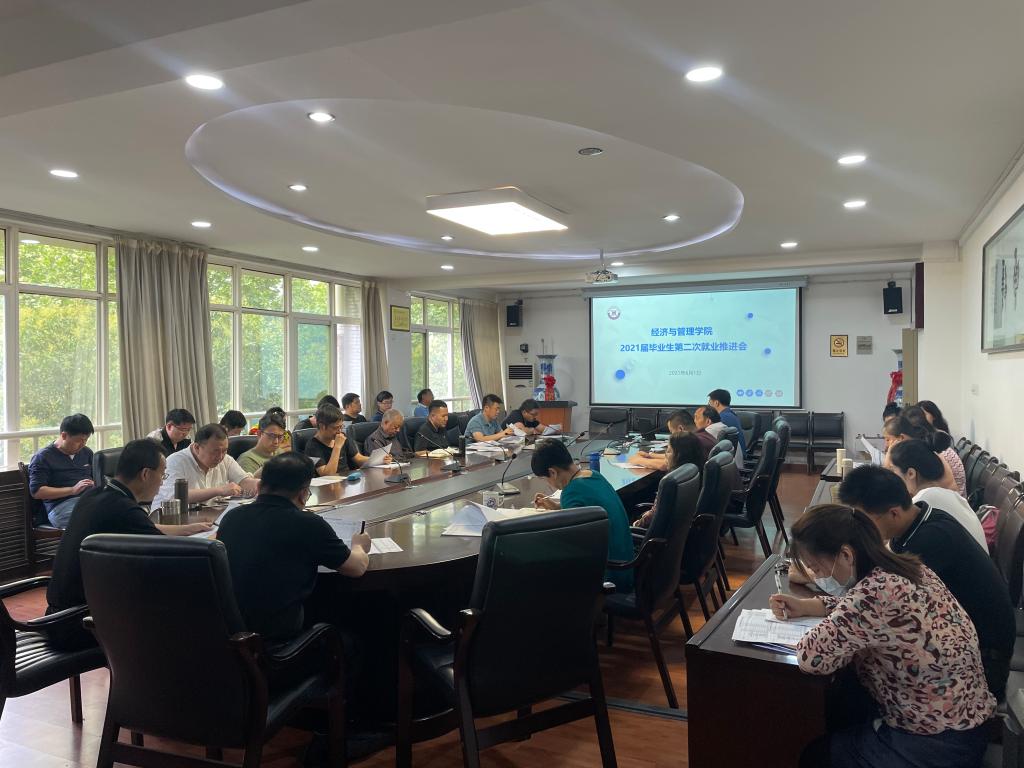 2021年6月1日下午2点半,70net永乐高平台2021届毕业生第二次就业工作推进会在学院大会议室召开。院党委书记王瑞生、院长胡海青、院班子成员、科级以上干部、毕业班辅导员、结对帮扶教师参加了会议。会议由院长胡海青主持。