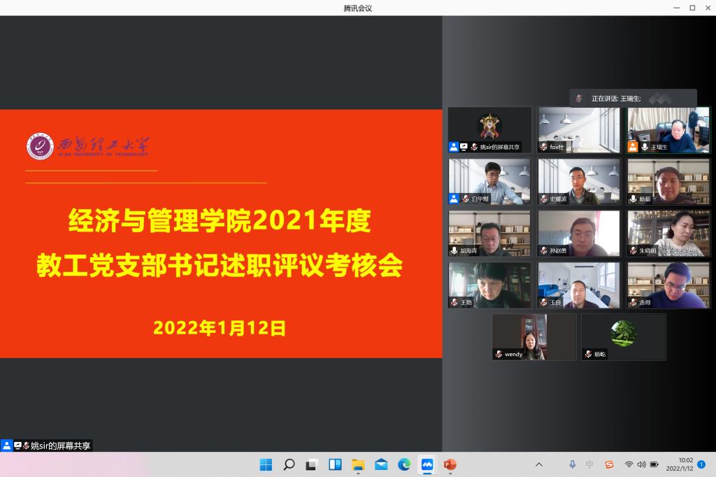 2022年1月12日上午,70net永乐高平台党委以腾讯会议形式,组织召开2021年度教工党支部书记述职评议考核会,学院全体党委委员、教工支部书记参会,学院党委书记王瑞生主持会议。