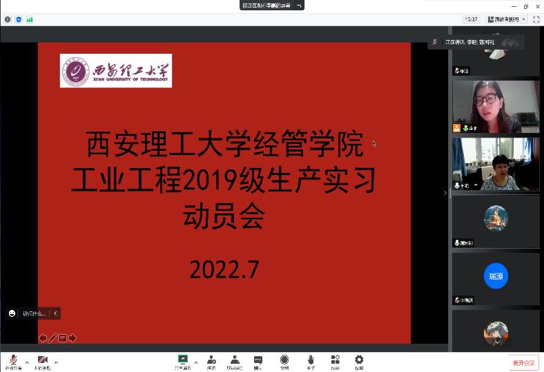 7月11日下午,70net永乐高平台管理科学与工程系工业工程专业召开了2019级本科生生产实习线上动员大会,70net永乐高平台副院长王艳,系主任蒲国利,5名实习带队老师,工业工程专业2019级全体本科生参加了动员会议,会议由实习队负责人李鹏老师主持。