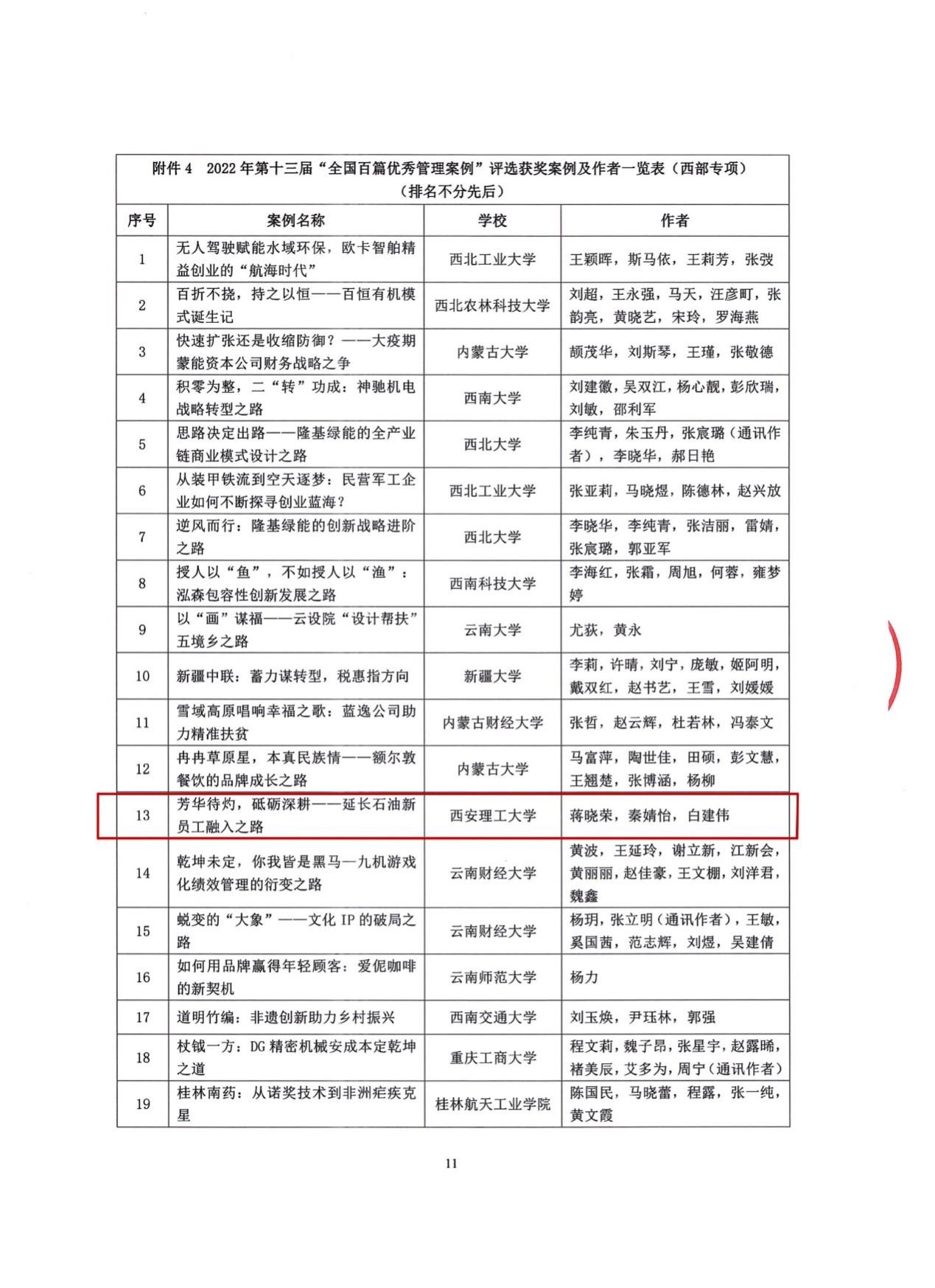 本次获奖是蒋晓荣副教授及其团队在“全国百篇优秀管理案例”评选中第三次获奖。本次获奖案例题目是《芳华待灼,砥砺深耕——延长石油新员工融入之路》,该案例围绕“组织社会化”这个核心主题,通篇贯彻思政元素,向读者展示了延长石油对入职的90后新生代员工采取的各类社会化措施,指出国有企业“坚持党的领导毫不动摇”核心理念、基本的制度和秩序遵守应作为员工组织社会化的重要内容,旨在引发对国企员工社会化的思考和启示。