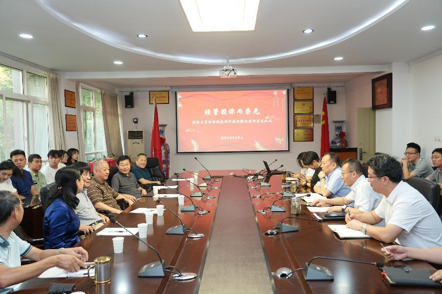 王瑞生书记和胡海青院长代表学院党委向退休教师送上鲜花,并颁发慰问品。老教师们畅所欲言,追忆着自己从事教育工作的点点滴滴,分享着自己多年教书育人的感悟和体验。在温馨而热烈的气氛中,新老教师齐聚一堂、共叙情谊。