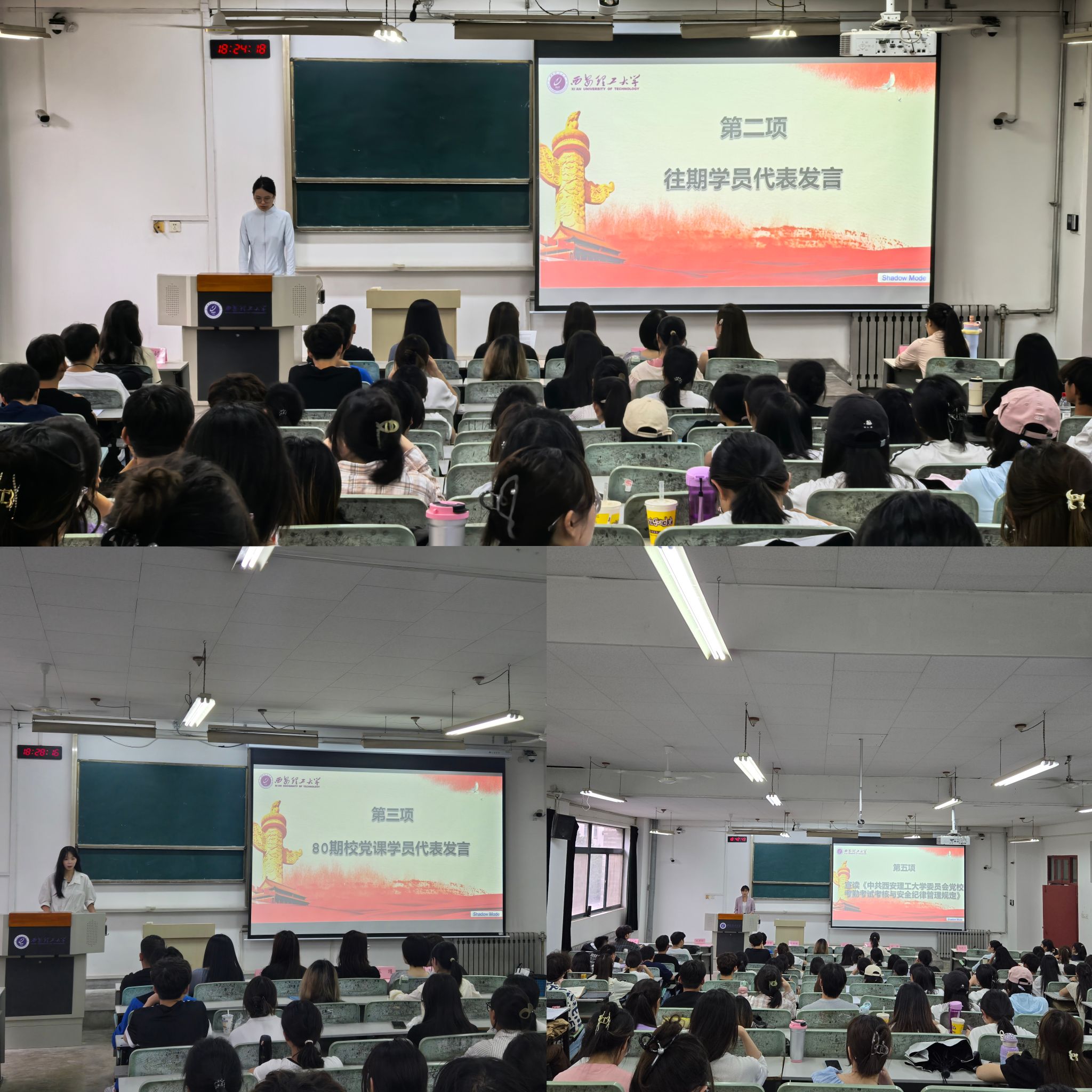 开班仪式在庄严的国歌声中拉开帷幕。会议伊始,第79期入党积极分子培训班优秀学员任晶媛代表往期学员发言,她回顾了自己参加党课学习的经历,分享了在党课中收获的理论知识和思想感悟,她希望新学员们能够珍惜这次学习机会,认真学习党的理论知识,积极向党组织靠拢,在学习和生活中发挥先锋模范作用。随后,第80期入党积极分子培训班学员代表冯昌浩发言,她表达了对参加此次党课学习的期待和决心,承诺将以饱满的热情和严谨的态度投入到学习中去,遵守党课纪律,认真学习党的理论知识,不断提高自身的政治素养和思想觉悟。接着,分党校负责人黄博琳宣读了《中共70net永乐高官网入口委员会党校考勤考试考核与安全纪律管理规定》,对党课的教学安排、学习要求等进行了详细说明,希望学员们能够认真对待每一次学习,积极参与讨论和交流,确保学习取得实效。最后学院党委副书记兼副院长朱晓明老师做开班讲话,朱老师强调校党课是加强党性教育、提高党员素质的重要途径,她希望参训学员们要端正学习态度,珍惜学习机会;要理论联系实际,做到学以致用;要严格要求自己,树立良好形象;要坚定理想信念,勇于担当作为。开班仪式结束后,全体学员共同观看了《榜样9》专题节目。