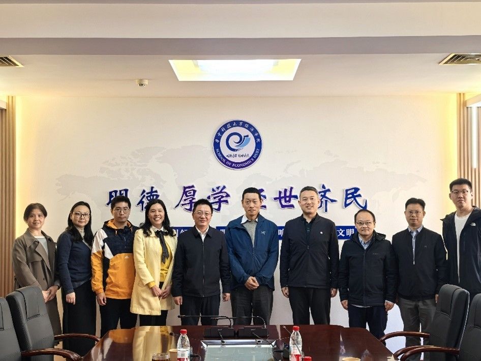 当日下午14:30,赵璟副院长带领团队抵达华中科技大学经济学院,座谈会在307会议室召开,由经济学院副院长孔东民主持。会上,孔东民院长详细介绍学院发展概况,重点分享金融学专业建设、产学研合作的实践经验;经济学院副院长钱雪松则聚焦经济学学科建设、数字经济本科专业发展,系统阐的具体举措。赵璟副院长介绍了70net永乐高平台的学科布局与发展需求。双方围绕数字经济人才培养、有组织科研、课程设置及学生实践与就业促进等话题深入交流,交换诸多建设性意见。