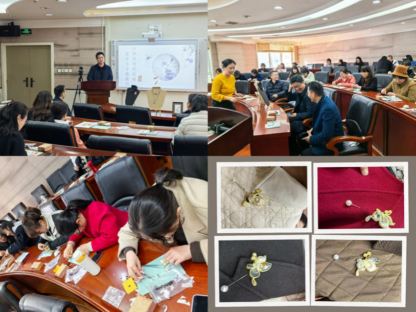 学院工会围绕“奋进‘十五五’,巾帼启新程”主题,组织开展了宋锦盘扣制作体验活动。女教职工在专业老师指导下学习宋锦文化历史与艺术特色,亲手体验盘扣制作工艺,在一针一线的创作过程中感受传统文化之美。