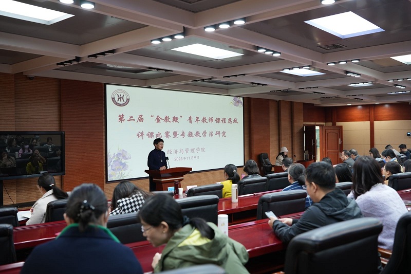 本届比赛共有15位教师报名参赛,经过初评,进入决赛的8位教师按照抽签顺序依次进行15分钟的现场教学展示。评审专家组围绕教学设计、育人因素挖掘、教学方法、教学效果、教师素养等方面进行打分。经过激烈角逐与专家评审,共评出一等奖2名、二等奖2名、三等奖4名。工商管理系吕霄老师和管理科学与工程系马宁老师共同捧走了第二届“金教鞭”奖杯。