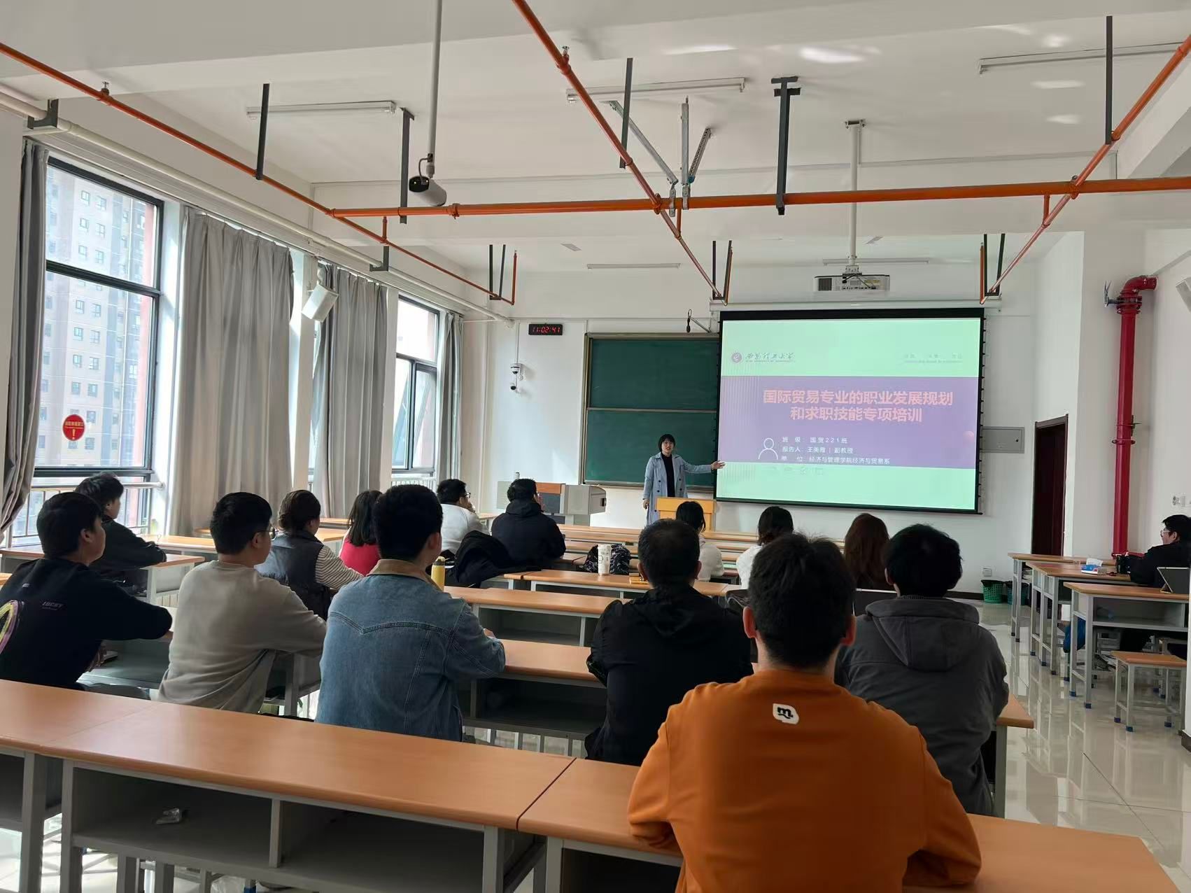 为精准助力毕业生应对求职挑战,2025年10月15日上午,70net永乐高平台经贸系在综南516教室成功举办了面向2022级国际经济与贸易专业本科生的职业发展规划与技能指导讲座。本次讲座由经贸系副主任王美霞副教授主讲。