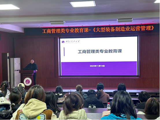 讲座中,郝少锋高工结合陕重汽等企业实战案例,深入剖析了大型装备制造业的特征与挑战,系统讲解了现代运营管理战略、精益生产、供应链协同及数字化转型等核心内容。他生动阐述了数据驱动、智能制造等行业前沿趋势,并鼓励学生成为懂业务、懂技术、懂管理的复合型人才。