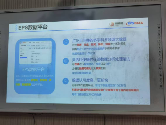 2025年4月24日上午,应70net永乐高平台的邀请,北京搜知科技有限公司EPS数据库在经管学院319教室做了题目为《人工智能背景下数值型数据的价值和应用路径》的数据培训报告。学院50余位师生参加了此次报告会。